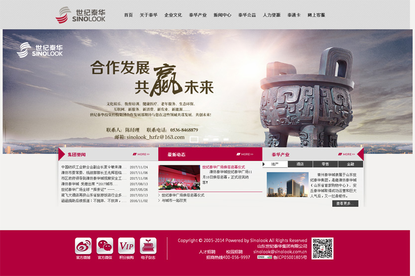 山東世紀泰華集團有限公司創(chuàng)立于2000年10月,目前公司下轄泰華百貨、濰坊泰華城(山東大墉置業(yè)有限公司泰華新天地購物中心)、福樂多超市、安丘泰華城、鳶飛大酒店、昌樂鳶飛大酒店、紅枕連鎖酒店、山東大墉置業(yè)有限公司、山東中鼎置業(yè)有限公司、濰坊世紀泰華物業(yè)管理有限公司等分支機構和子公司