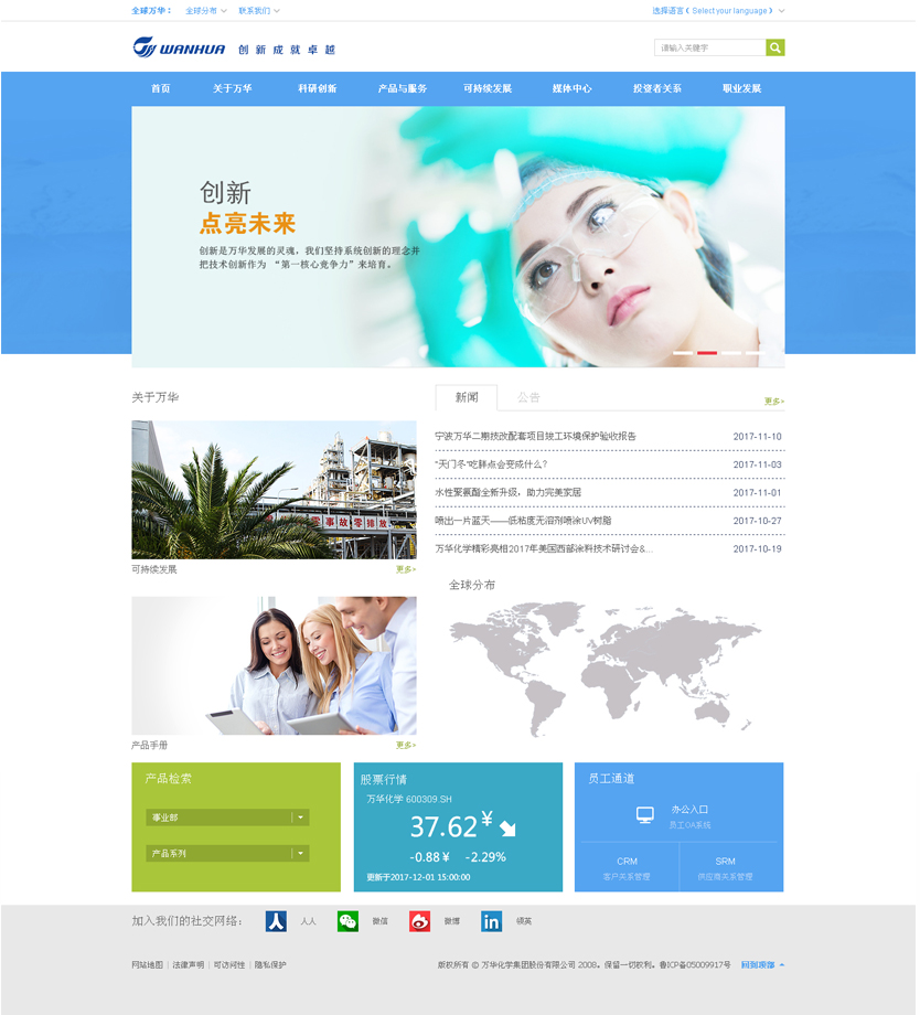 萬華化學(xué)集團(tuán)股份有限公司是一家全球化運(yùn)營的化工新材料公司,依托不斷創(chuàng)新的核心技術(shù)、產(chǎn)業(yè)化裝置及高效的運(yùn)營模式,為客戶提供更具競爭力的產(chǎn)品及解決方案。